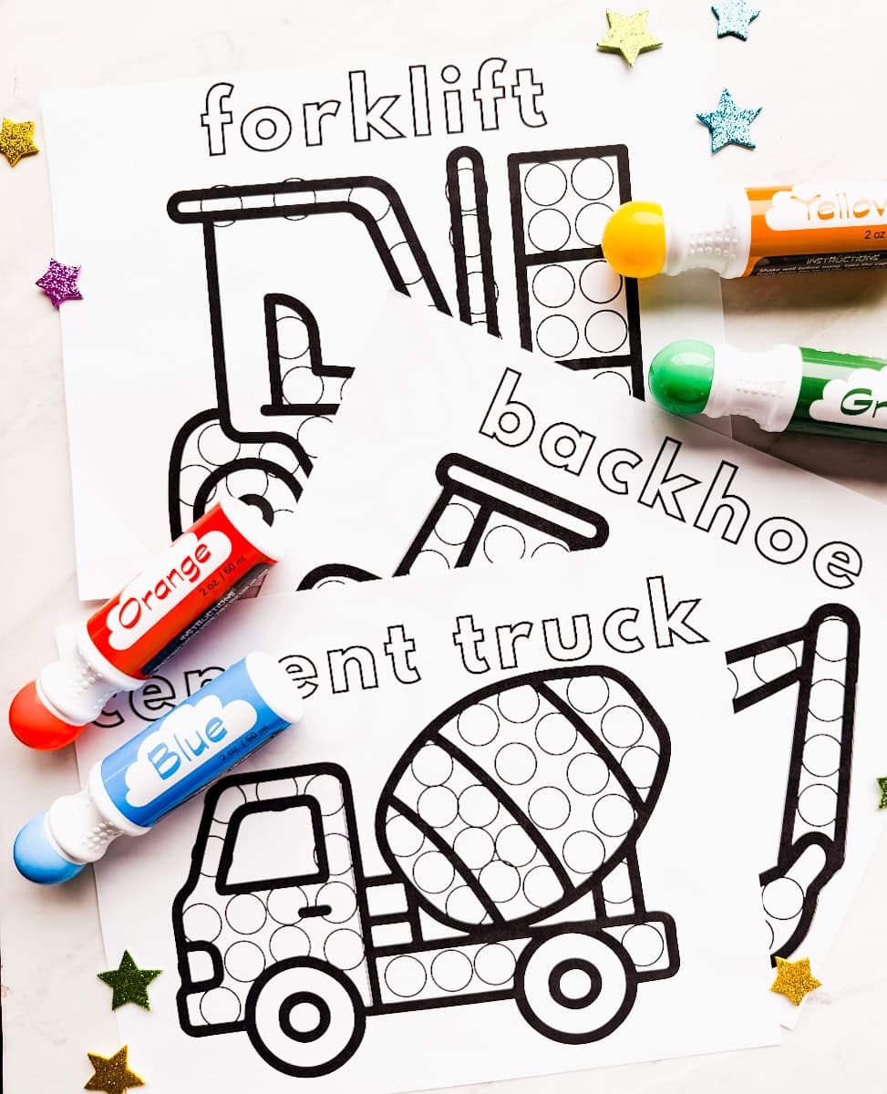 If you have a child who love construction trucks, these free construction truck dot marker pages are such a fun and easy activity!