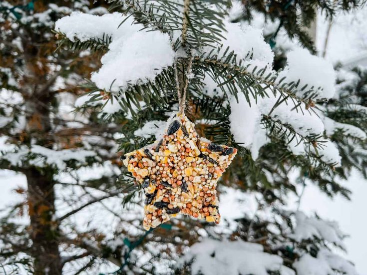 These fun and simple diy birdseed ornaments are a great winter craft for kids and the bird lovers in your family! Kids will love making the fun cookie cutter bird feeders and watching the birds and squirrels come and enjoy a tasty snack!