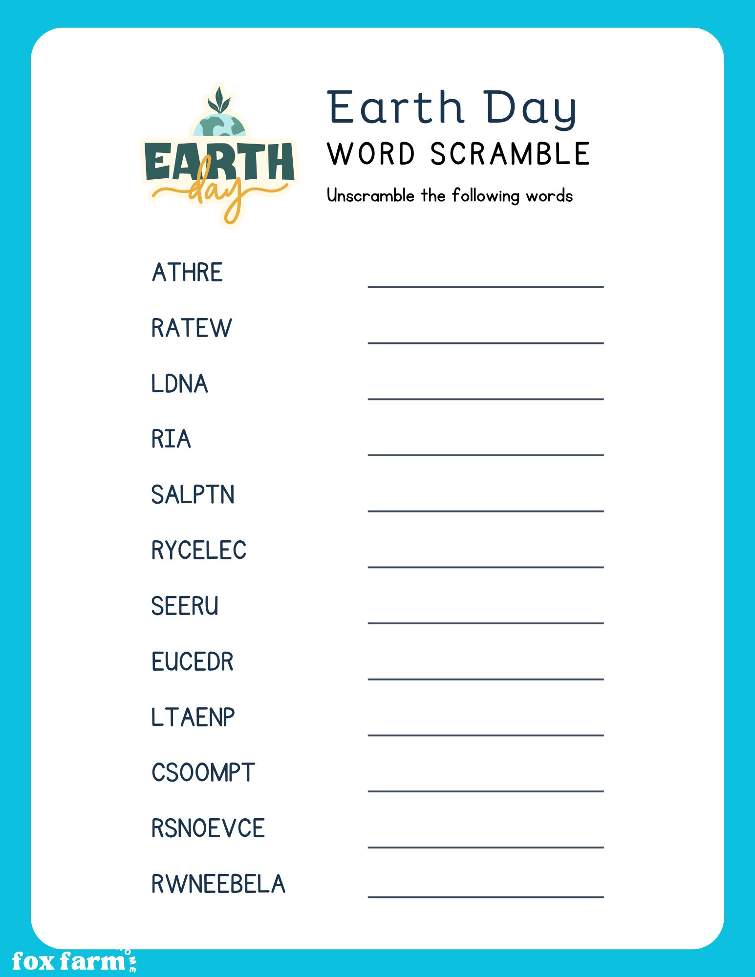 This would be a great addition to an Earth Day lesson plan and is a great way to promote environmental awareness and discuss why we celebrate Earth Day. You could even see if your kids could come up with new words and make their own word scramble!