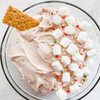 If you are looking for a super easy dessert recipe for your next holiday party you have found it! This hot cocoa dip is fluffy, creamy, hard to stop eating and only takes a few simple ingredients. It is a fun sweet treat for movie nights and Christmas parties and tastes like a cup of hot chocolate fluff.