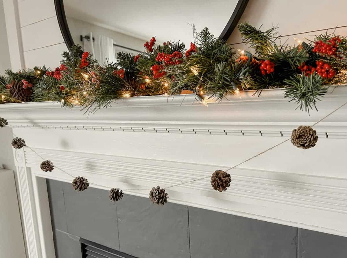 Garland is such a simple, fun way to decorate for the season. I love that my kids were able to go on a pinecone hunt with me as we were planning on making our garland. They loved seeing something go from the floor of the forest by our house to a sweet decoration adorning our fireplace mantel during the winter months. This craft was a perfect way to slow down and realize the beauty in simplicity in an otherwise busy and sometimes overwhelming holiday season.