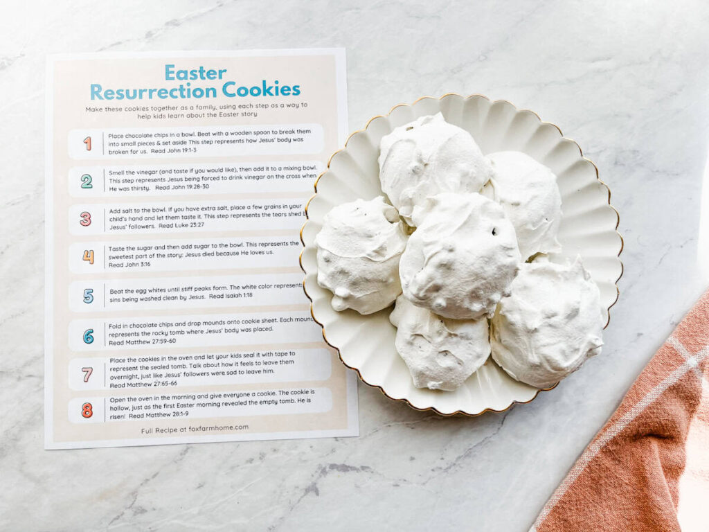 Make resurrection cookies or “empty tomb cookies” as a meaningful Easter dessert for the whole family! This is a fun Easter tradition and a great way to teach the Easter story to kids in a more tangible way.