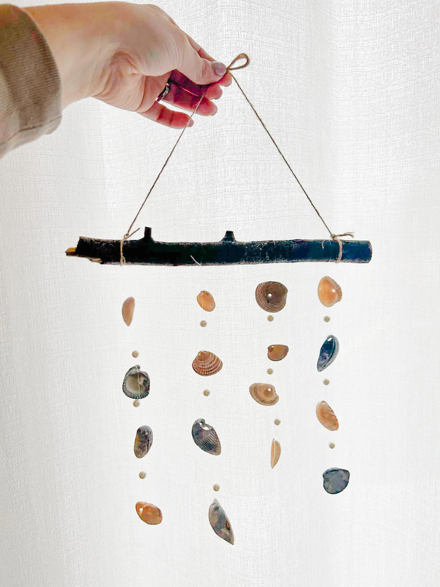 This seashell & bead wind chime is so fun to make and a perfect way to display your vacation treasures. Best of all it was free to make because we had all the materials on hand!