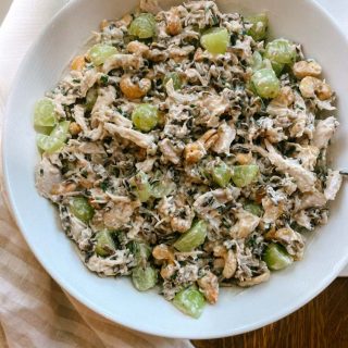 Growing up my mom always made chicken salad for summer lunches and now as an adult I understand why! It is a perfect dish to prep ahead of time, make for a large family, and goes with just about anything. There are many ways to serve this wild rice chicken salad depending on your preferences and what you have on hand. My personal favorite is on croissants, but you can use any bread, wrap, salad, or lettuce wraps.